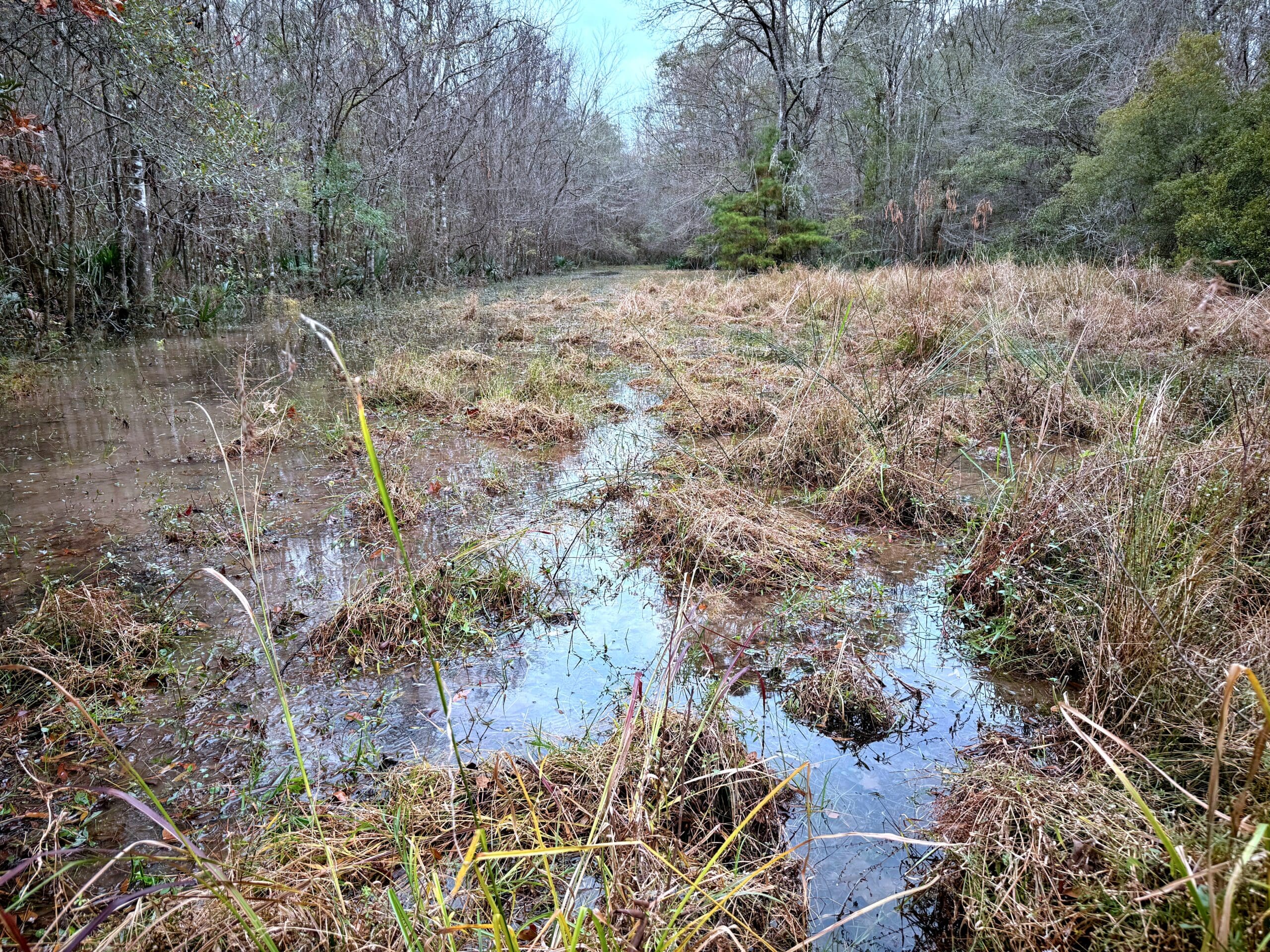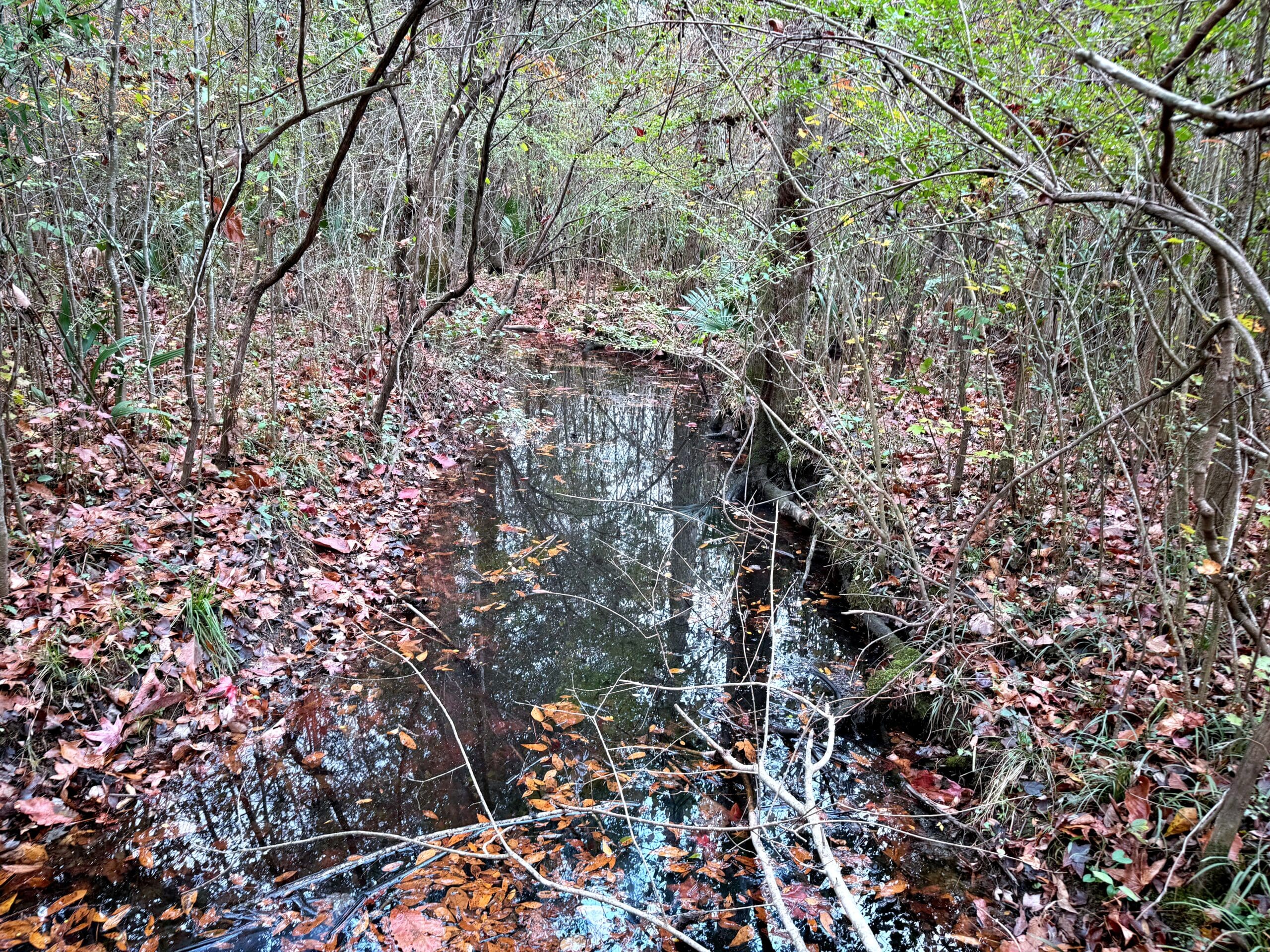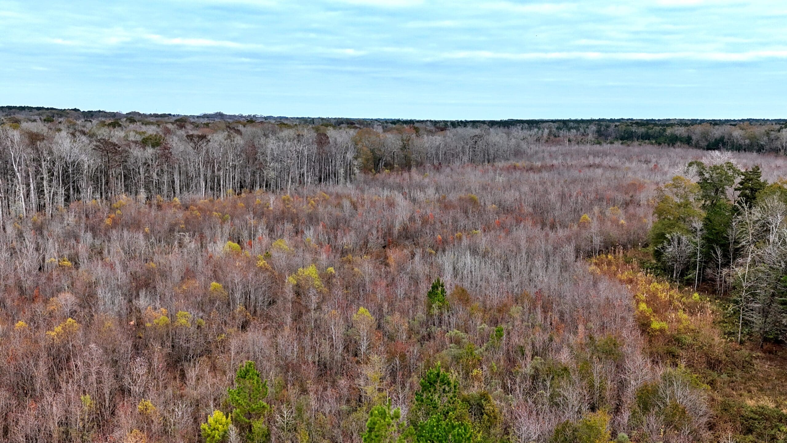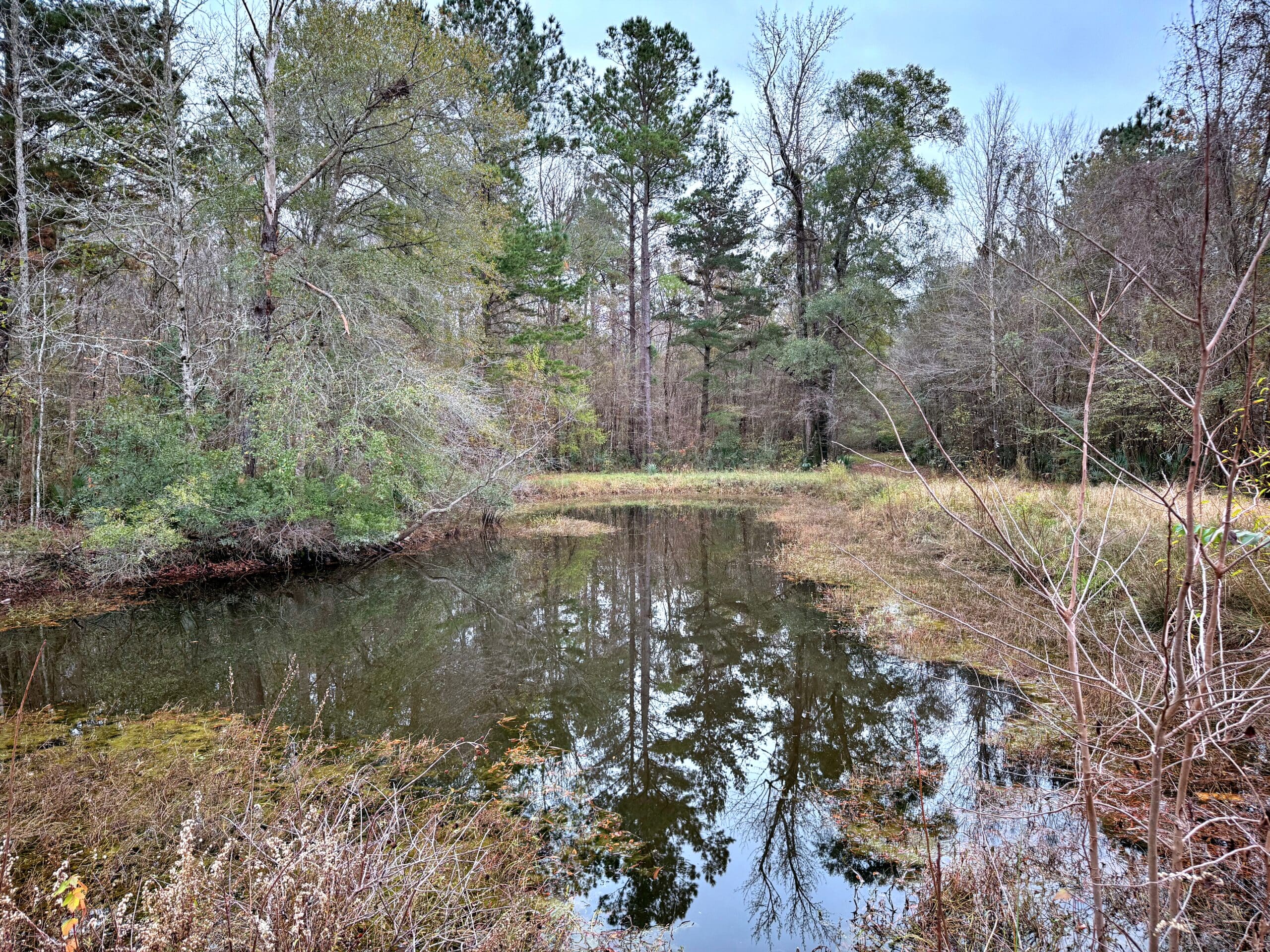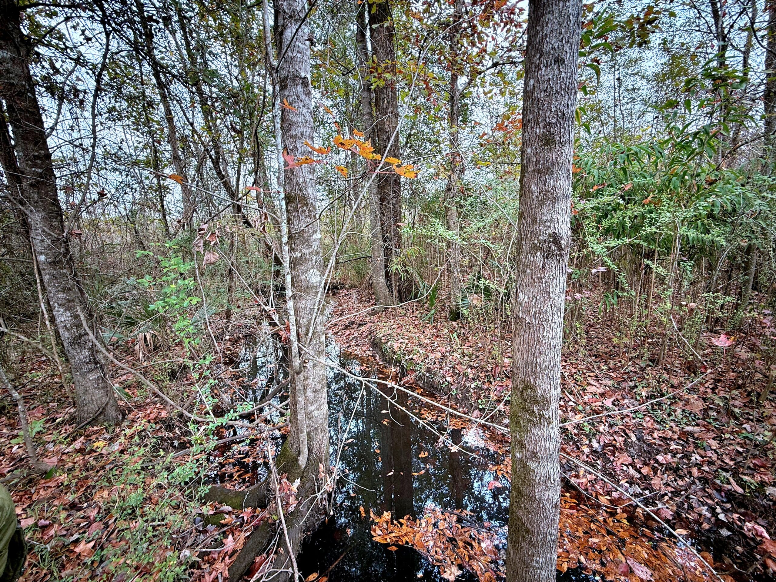 A few minutes from downtown Summerville and 25 minutes from Daniel Island, the Headwaters property presents an extremely rare opportunity to own a wild oasis just minutes from town. Situated on the upper reaches of the Ashley River between residential and commercial properties, this gamey tract gets quiet quickly – unless the noise is whistling wood ducks or gobbling turkeys. Worth noting too is that the tract is aided by green space buffering several warehouse properties, offering even more sanctuary around the 160 acres. This property is composed of mature hardwoods and significant spruce and loblolly pines, several blocks of naturally regenerating timber, creeks, open beaver dam marsh pockets, with some roads and cut lanes throughout. It’s loaded with deer, wood ducks, and has a solid turkey population. It does not currently have a conservation easement in place.